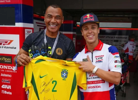 Cafu e Diogo Moreira se encontram em Goiânia e trocam presentes na MotoGP