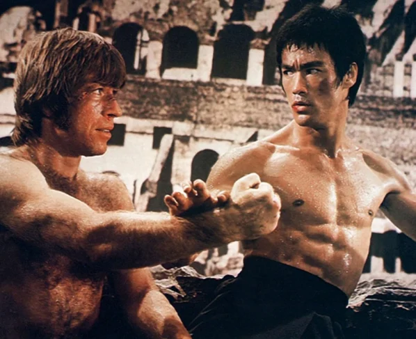 Bruce Lee e Chuck Norris no filme O Voo do Dragão